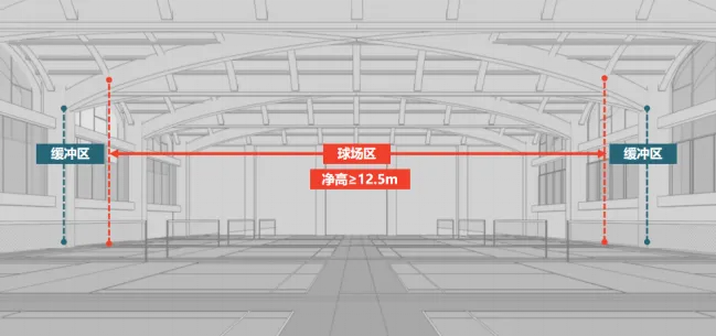 體育空間的立體化設(shè)計對建筑高度提出了新的挑戰(zhàn),尤其在面對用地規(guī)劃20米限高規(guī)定以及室內(nèi)體育場地特定的凈高需求。以羽毛球館為例,訓(xùn)練和比賽場地要求為12.5米凈高,傳統(tǒng)拱形結(jié)構(gòu)設(shè)計因橫梁高度限制,在實際應(yīng)用中難以滿足賽時的凈空高度標(biāo)準(zhǔn)。為解決這一問題,設(shè)計創(chuàng)造性采用了交叉拱的結(jié)構(gòu)形式,通過受力分布的改變,成功將橫梁高度由原來的1.5米大幅縮減至0.4米,不僅確保了日常訓(xùn)練與正式比賽的凈空高度要求,而且有效降低了整體建筑高度,使之符合用地規(guī)劃的限高標(biāo)準(zhǔn)。這種優(yōu)化設(shè)計實現(xiàn)了室內(nèi)空間的高效利用,充分體現(xiàn)設(shè)計與功能需求、規(guī)劃要求之間的和諧統(tǒng)一。