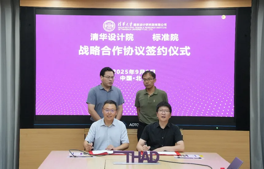 2025年9月2日下午,中國(guó)建筑標(biāo)準(zhǔn)設(shè)計(jì)研究院有限公司(以下簡(jiǎn)稱(chēng)“標(biāo)準(zhǔn)院”)黨委副書(shū)記、總經(jīng)理韓高峰,黨委副書(shū)記、副總經(jīng)理羅文斌與清華大學(xué)建筑設(shè)計(jì)研究院有限公司(以下簡(jiǎn)稱(chēng)“清華設(shè)計(jì)院”)院長(zhǎng)、總建筑師任飛,副院長(zhǎng)、副總建筑師唐鴻駿在清華大學(xué)設(shè)計(jì)中心樓舜德廳舉行戰(zhàn)略合作對(duì)接會(huì)并正式簽署戰(zhàn)略合作協(xié)議。此次合作旨在整合雙方優(yōu)勢(shì)資源,聚焦科研創(chuàng)新、標(biāo)準(zhǔn)制定、企業(yè)管理與項(xiàng)目合作等多個(gè)維度,共同提升設(shè)計(jì)服務(wù)水平與行業(yè)技術(shù)實(shí)踐能力。
